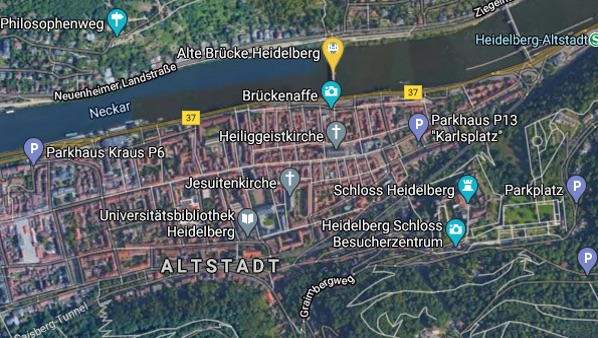 The predecessors of the present Old Bridge were all made of wood. As these were repeatedly destroyed by wars and floods, the Electoral Prince Karl Theodor had a stone bridge built over the river (1786-1788). It was made of Neckar Valley sandstone and is today one of the most famous landmarks of Heidelberg.